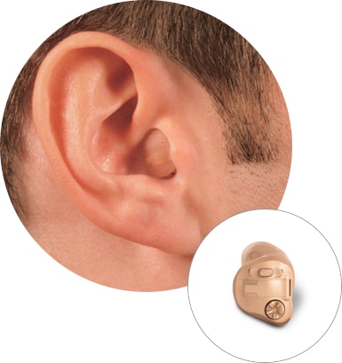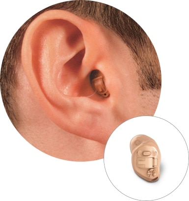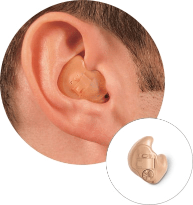This hearing aid is placed in the ear canal and is the smallest available. It takes advantage of the ear’s natural ability to collect sound, and its discreet size makes the device virtually invisible to others.